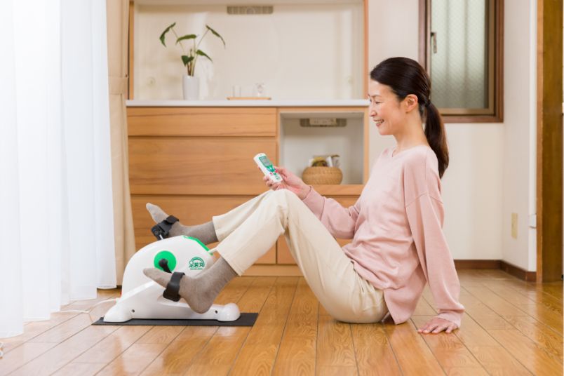 自宅で手軽に運動できる、電動ペダル運動機器「足若丸」
