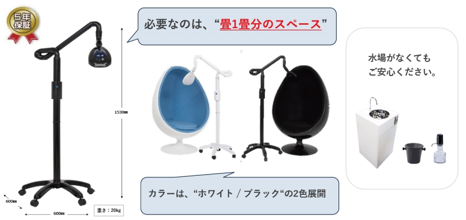 - 狭いスペースにも置ける設計で、小規模サロンや家庭用にも最適